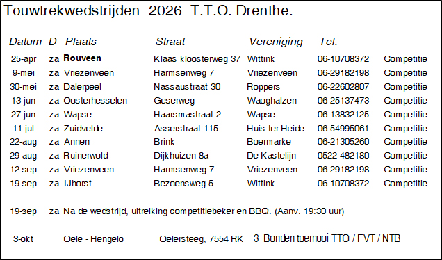Alle wedstrijden beginnen om 20:00 uur. (19/09 3 Bonden om 19:30 uur.)