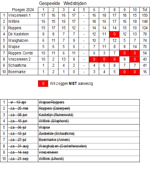 Competitie uitslagen 2024